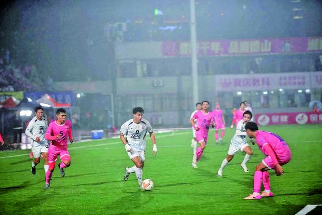 本报讯(记者 李涛)11月9日,2025湖南中超联赛第九轮比赛在常德体育中心举行。湘潭队冒着小雨打出了最好的状态,但仍然0-2输给了实力大得多的常德队,无法保持最近三场比赛的得分势头。虽然输了,但场内球迷还是为 Shotan 战斗到最后的拼搏精神鼓掌。湘潭队在雨中盘带积极,拼抢球权。 (记者罗涛摄) 此役之前,两队的局势都比较微妙。常德队近期状态起伏不定,输给株洲队,险胜怀化队。他们迫切需要一场胜利来恢复士气。湘潭队虽然开局缓慢,但从联赛中游开始就展现出了惊人的韧性。他们与实力强劲的株洲队和德尔轮换怀化队取得赛季首胜。决赛中他们与郴州打平。这场比赛对于晋级第8名至关重要,球队士气高昂。比赛在雨中开始,湿滑的地形对两队的技战术表现都造成了一定的影响。比赛一开始,求胜的常德队就开始猛烈逼抢,多名后卫紧逼中场线附近。湘潭队保持着防守和反击的态势,全队以积极的跑动和顽强的拼抢顽强地寻找机会。上半场第20分钟,湘潭队获得前场任意球。踢球者从二十多米外直接射门。球稍稍高于横梁。这是两队的第一次射门,也是湘潭队整个上半场仅有的两次射门之一。随着比赛的进行,常德队展现出明显的优势,在全力进攻下很快取得进球。第28分钟,常德队任意球破门。纳尔蒂禁区内以45度角射门。背着11号的何亚奇高高跃入人群中,用“狮头摇头”将球扔进了湘潭队的球网。第43分钟,常德队前场得球,立即杀入禁区。湘潭队门将冲球时绊倒对手,被吹犯规。常德队10号乔文迪主罚点球,获得加分。 2:0,常德队取得领先,上半场结束。后半天,雨小了一些。湘潭队多次换人,改变场上局势。在主场球迷的欢呼声中,常德队继续向湘潭队球门施压,双方展开反击。第65分钟,湘潭队禁区内混战后进球,但裁判吹响了犯规,第一个进球被判无效。追平两分领先后,湘潭队并没有放弃,发起猛攻,目的是扳平比分。不过最后一投有点运气不好,他们没能打破比分。我们在客场输球真是遗憾。尽管球队失利,但数百名湘潭球迷冒着风雨为常德加油,把体育场变成了一个温暖的舞台。比赛过程中,他们的欢呼声并未停止。赛后,球迷们为全力以赴的战士们鼓掌,并喊出“加油!翔丹队!”等鼓励声。 “加油,山东!” “战斗到最后,我们永远支持你!”欧拉球迷赛后告诉记者:“结果令人失望,但我们看到了球队的激情和永不放弃的精神。从赛季初的困难,到现在每场比赛都必须拼搏,球队的进步是大家有目共睹的。球员们在这场雨天的比赛中拼得很努力,我们理解他们,也理解他们“他们!”这场比赛过后,常德队拿分,将变得更加强大,继续向第一的目标前进。虽然湘潭队的第八名之路变得更加艰难,但全队表现出的顽强斗志和近几场比赛的向上势头,仍然让人对这支“湘中凤凰”未来的佳绩充满期待。湘超联赛已经走到了这一步,每一分都很重要。湘潭队的征程还没有结束。