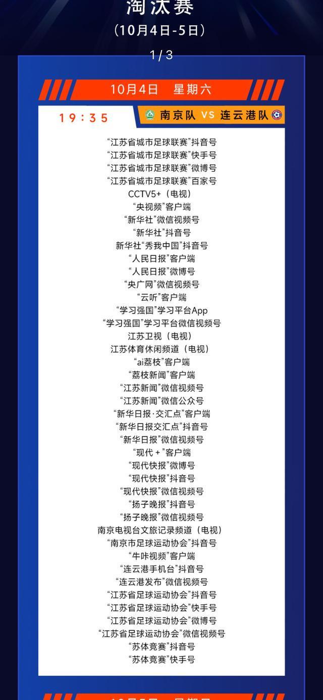 10月4日,5日,7日和8日,现代快递新闻。 10月3日,其Chao的正式微信帐户发布了一项计划党传输计划(10月4日至5日)。现代快递记者注意到,CCTV5+(电视)于10月4日晚上,10月5日晚上和10月4日晚上播出,播放给Lianyungang和Xuzhou。记者了解到,这是CCTV电视台第一次播放现场苏联超级联赛活动。 On the National Day holidays, there were three supplementary games in the 2025 Super League for China for approximately the same period on October 4, namely, the 7pm meizhou hakka vs qingdao manatee (24th round of supplements), 7pm dalian yingbo vs qingdao west coast (23rd ronda), 7pm Shann Shann Shann (26th round of supplements).但是,CCTV电视平台没有组织直播。以前,CCTV视频,《人民报》和新华社等中央媒体在互联网上传播了苏联超级联赛。现代快递rEporters了解到,苏联超级联赛活动的首次现场闭路电视传播,这是国庆日假期和总理节的明星表演,表明苏联超级联赛是多少。